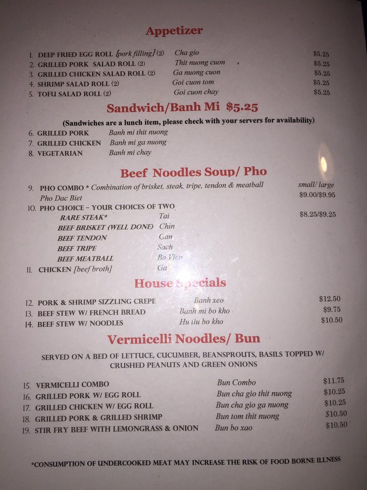 Pho Aroma, a Vietnamese restaurant located in Seattle, offers a variety of delicious dishes such as Banh Mi sandwiches, beef noodle soups, and appetizers like Goi Cuon and Shrimp Salad Rolls. The menu features options for vegetarians and meat-eaters alike, making it a great spot for groups and families. With convenient amenities like delivery, takeout, and reservations, Pho Aroma provides a hassle-free dining experience. The cozy atmosphere, outdoor seating, and waiter service add to the welcoming ambiance of the restaurant. Don't miss out on trying the flavorful Banh Mi Thit Nuong or the satisfying Pho Combo. Whether you're looking for a quick lunch or a relaxing dinner, Pho Aroma is the perfect place to enjoy authentic Vietnamese cuisine.